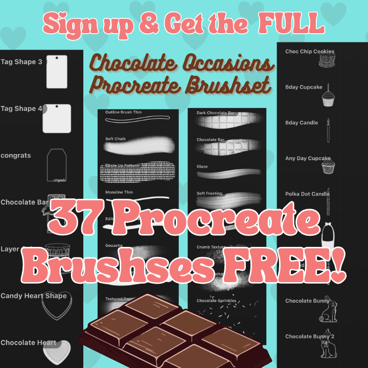 And… I have a FULL Chocolate Obsessions Procreate Brushset (43+ brushes) that you can get FREE when you sign up for my email list below!